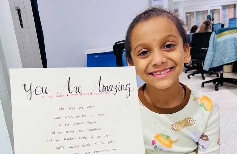 When Smruti Patel was diagnosed with leukemia, the team at Atrium Health Levine Children’s Beverly Knight Olson Children’s Hospital provided expert care. Minaxi Patel and her husband Ankit were afraid their future would entail many trips up I-75 to Atlanta after learning last year that their 7-year-old daughter, Smruti, had leukemia.
